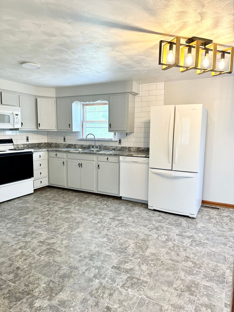 Downstairs, you'll find the third bedroom along with direct access to the garage. Additional perks include full-size washer and dryer hookups, central air conditioning and heat, and pet-friendly accommodations.