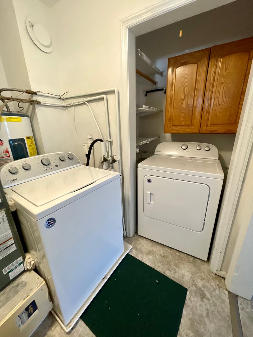 The kitchen offers generous cabinet and counter space, plus all appliances are included (stove, refrigerator, microwave). There’s even a separate laundry room with washer and dryer hookups— no trips to the laundromat!